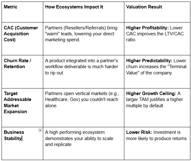 A partner ecosystem acts as a "force multiplier" for the metrics that private equity and VC firms scrutinize most: